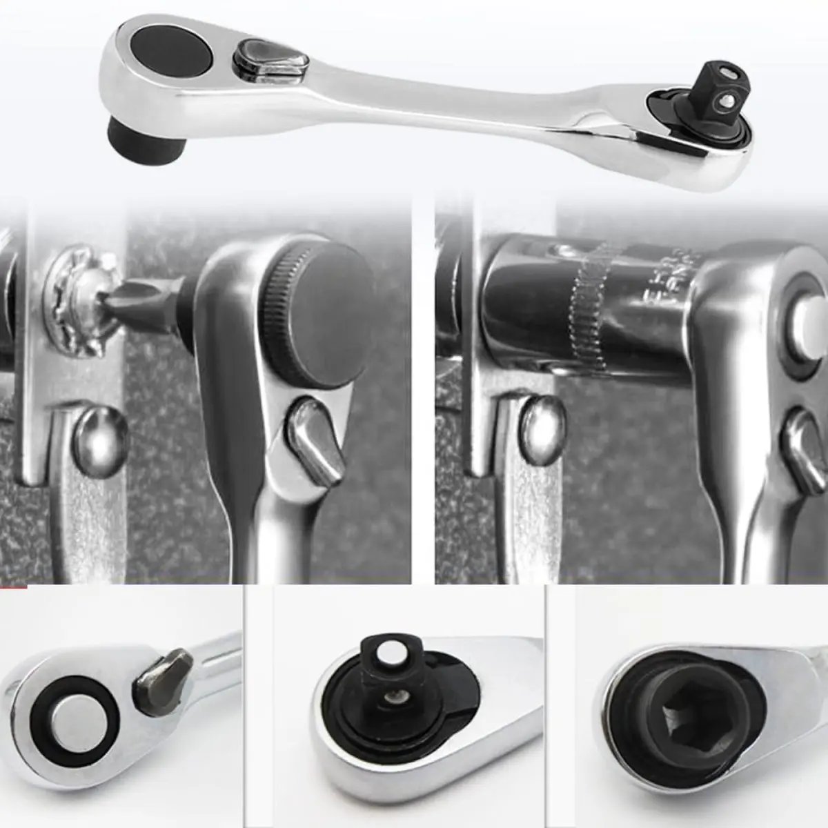 72-Tooth 1/4" Drive Mini Ratchet Wrench Double Ended Quick Release Socket Tool