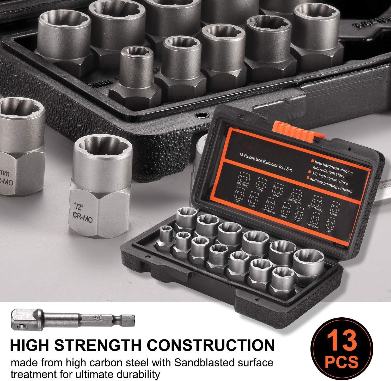 ★HEAVY-DURY IMPACT - The reverse spiral groove of the bolt and nut remover is made of high-hardness chromium-molybdenum steel and the inside has a Torx thread. It is designed to engage to provide maximum grip.
