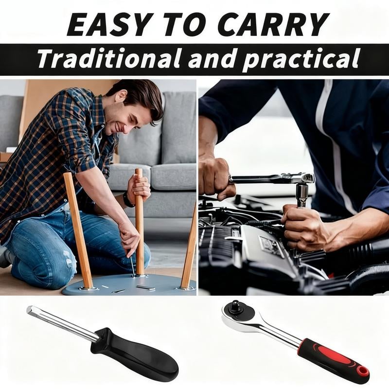 Crafted from premium chrome vanadium steel alloy, this socket set offers extraordinary hardness, toughness, and durability. Designed to handle high torque, it’s reliable for long-term use without bending or breaking like cheap alternatives.