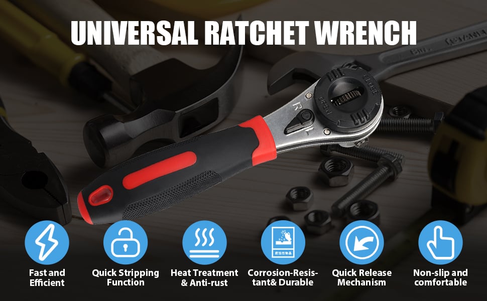 - 【Heat Treatment To Prevent Rust and Corrosion】The adjustable ratchet wrench tool is mainly made of high-quality chromium-vanadium steel material, and some parts are made of chromium molybdenum steel material, which has been heat treated to prevent rust and corrosion resistance.