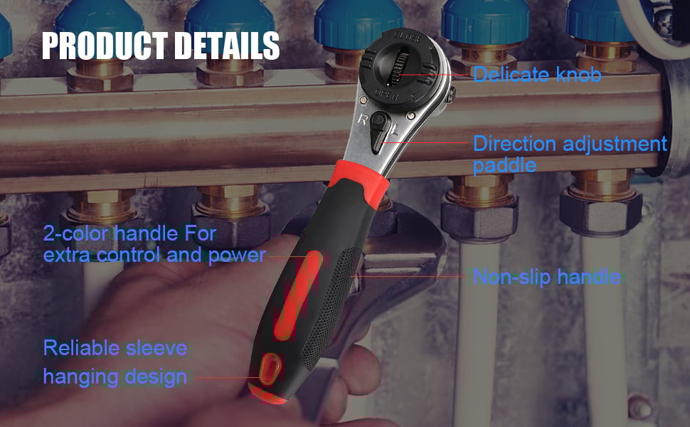 - 【Fast and Efficient Ratchet Wrench】The reverse gear function of the adjustable wrench allows you to tighten or loosen fasteners by lightly pressing the switch, and the 60 teeth on the mechanism provide smooth and fast operation.
