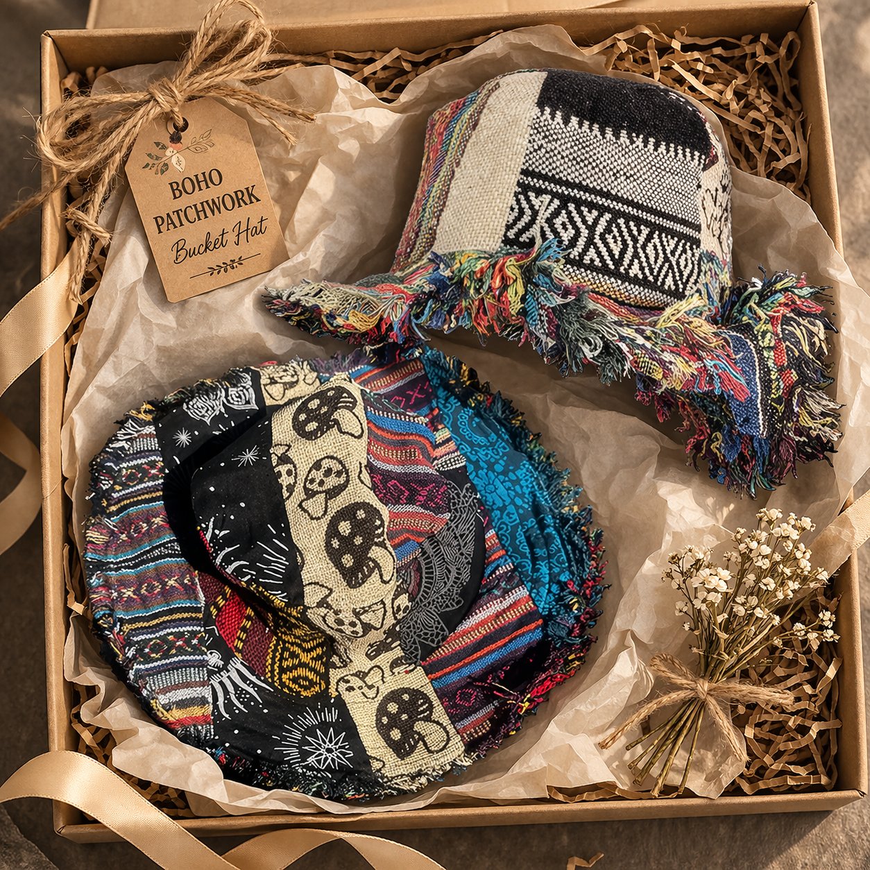 🎩🍄Frayed Patchwork Bucket Hat(✨Shapeable Brim One-of-a-Kind Style)