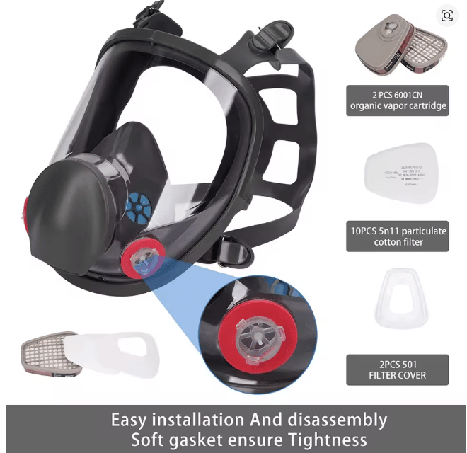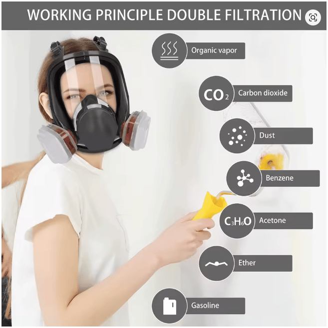 Spray Respirator Full Face Face-Piece Safety Supply with Cartridges Organic Acid Gases Cotton Filter Painting Pesticide