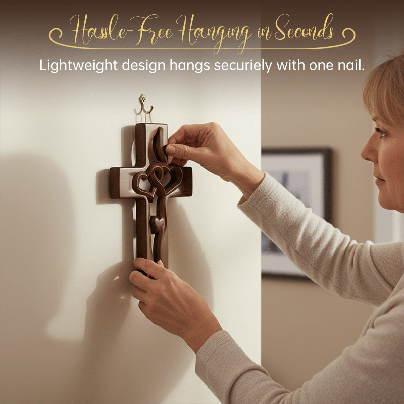 This cross exceeded my expectations! The natural pine is solid but lightweight, and the distressed finish gives it an heirloom feel. Hung it in my home office, and it’s a calming reminder throughout the day. The intertwined hearts are so delicate yet bold—such a thoughtful design. Worth every penny!