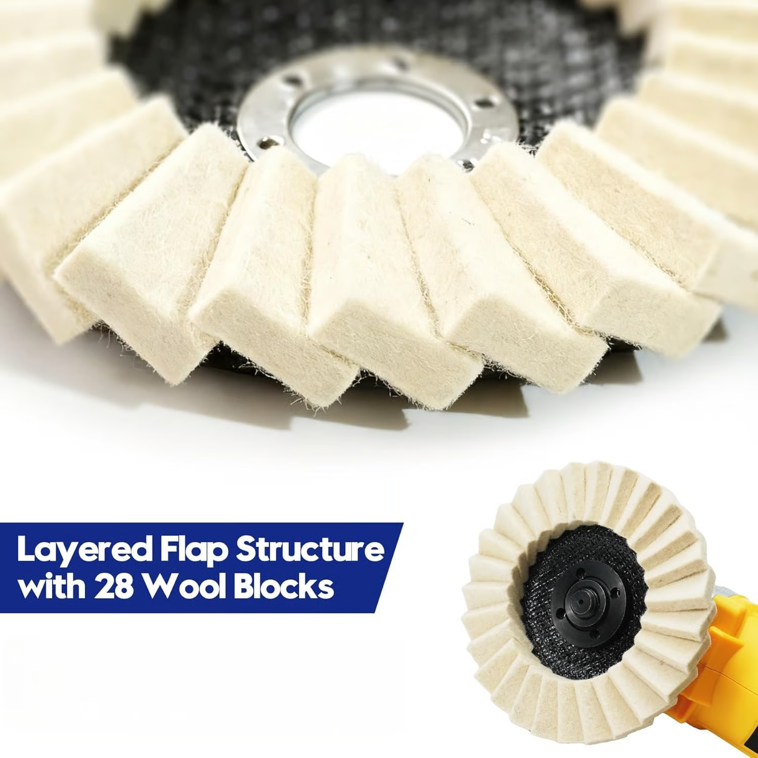 Each wool polishing wheel consists of 28 high-density wool blocks for fine polishing, superior durability, and extended lifespan. The reinforced fiberglass backing plate is impact-resistant and vibration-absorbing, ensuring stable performance with safe and reliable use.