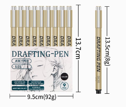 This set includes professional-grade fineliner pens with fine, precise tips. Each pen delivers smooth, consistent ink flow that’s perfect for detailed line work, sketching, and intricate designs. The ink is quick-drying, fade-resistant, and water-resistant, ensuring your artwork stays sharp and vibrant.