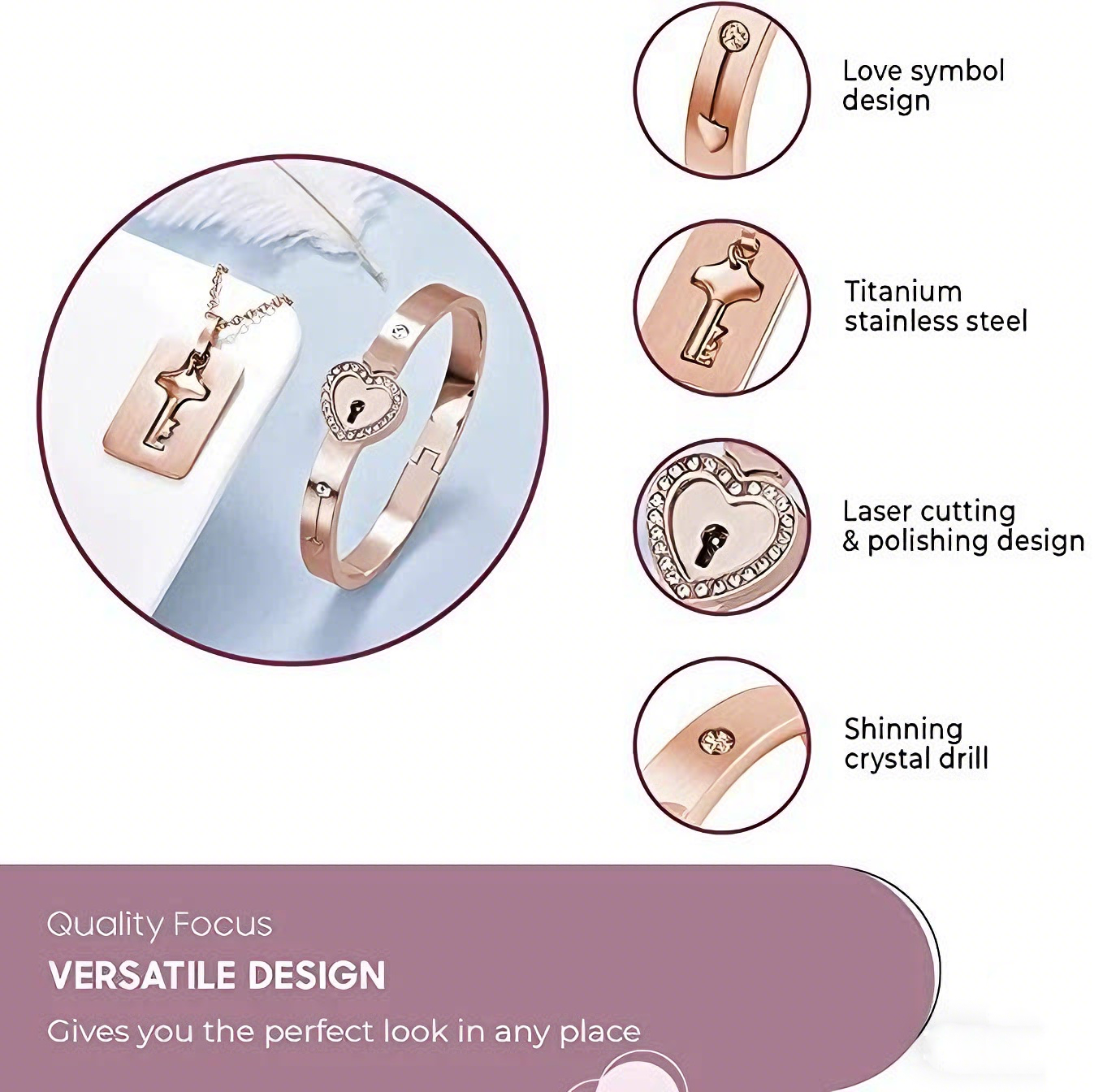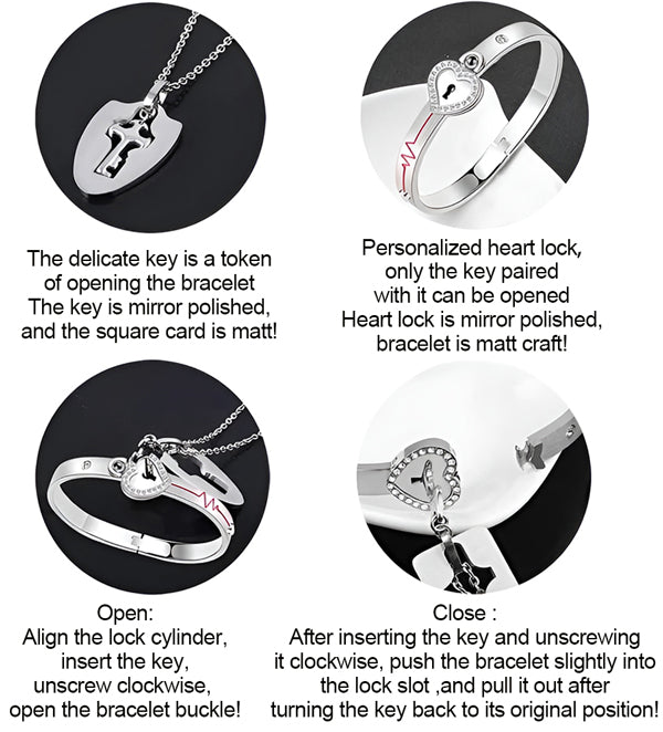 šAlign the key with the lock core of the bracelet, rotate it 90° clockwise, it is opened;Ā align the sides of the bracelet , fasten it tightly and it will close