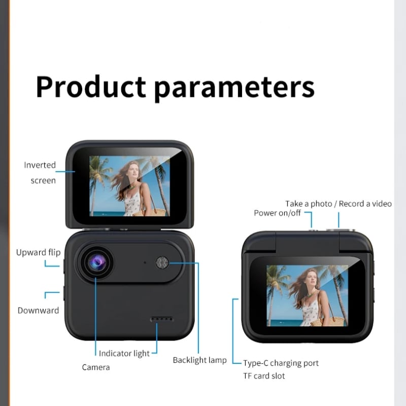 Flip screen design: Adjustable up/down for multi-angle viewing.