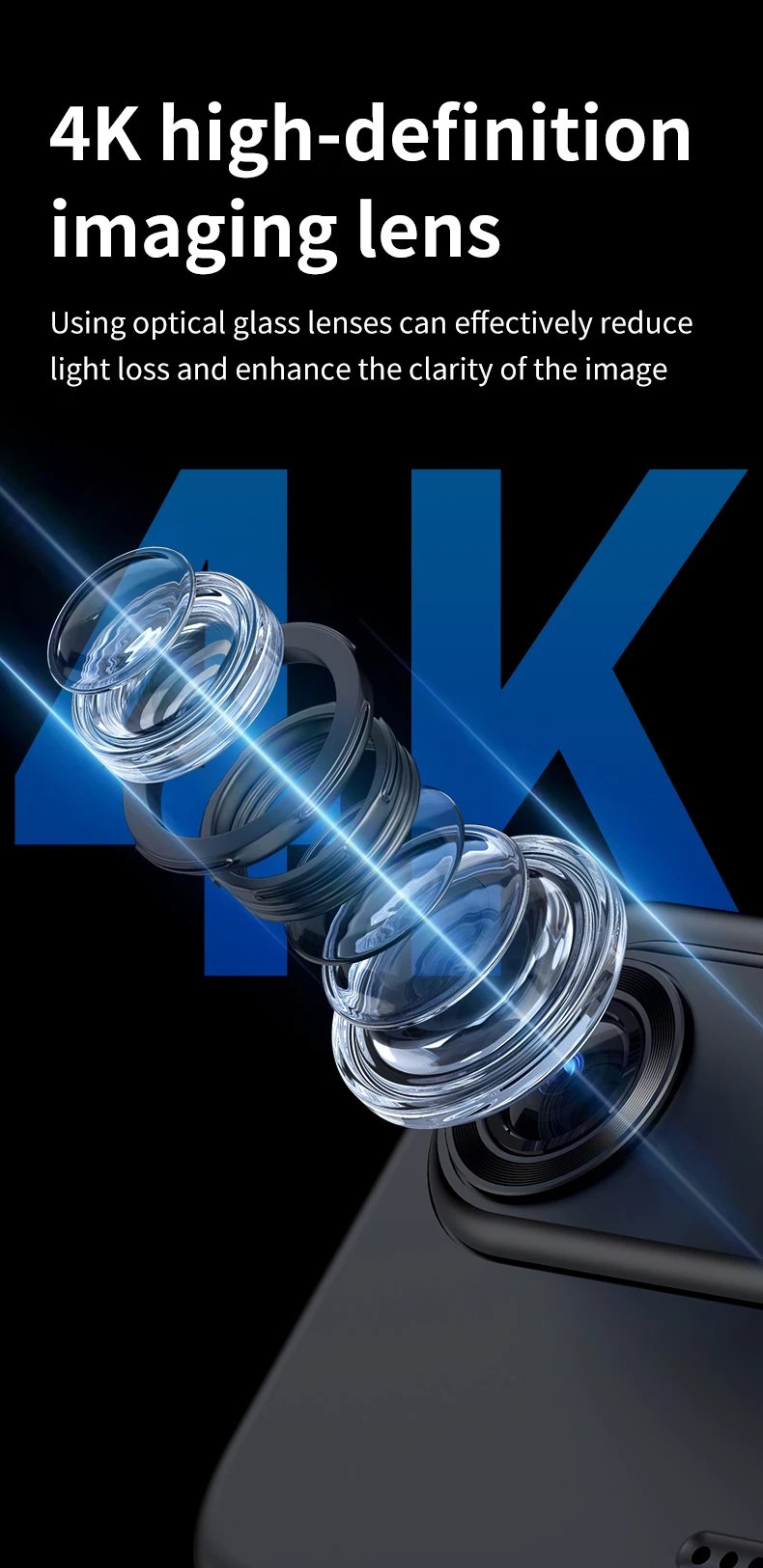 Optical Glass Lens: Reduces light loss, enhances image brightness and clarity.