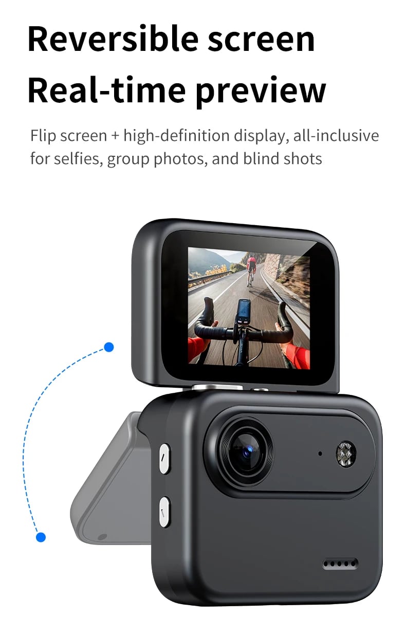 Mini Sports Camera 4K Ultra Clear Recording VLOG Recorder Flip Screen Anti Shake 143 ° Wide-angle Student Travel Camera Portable