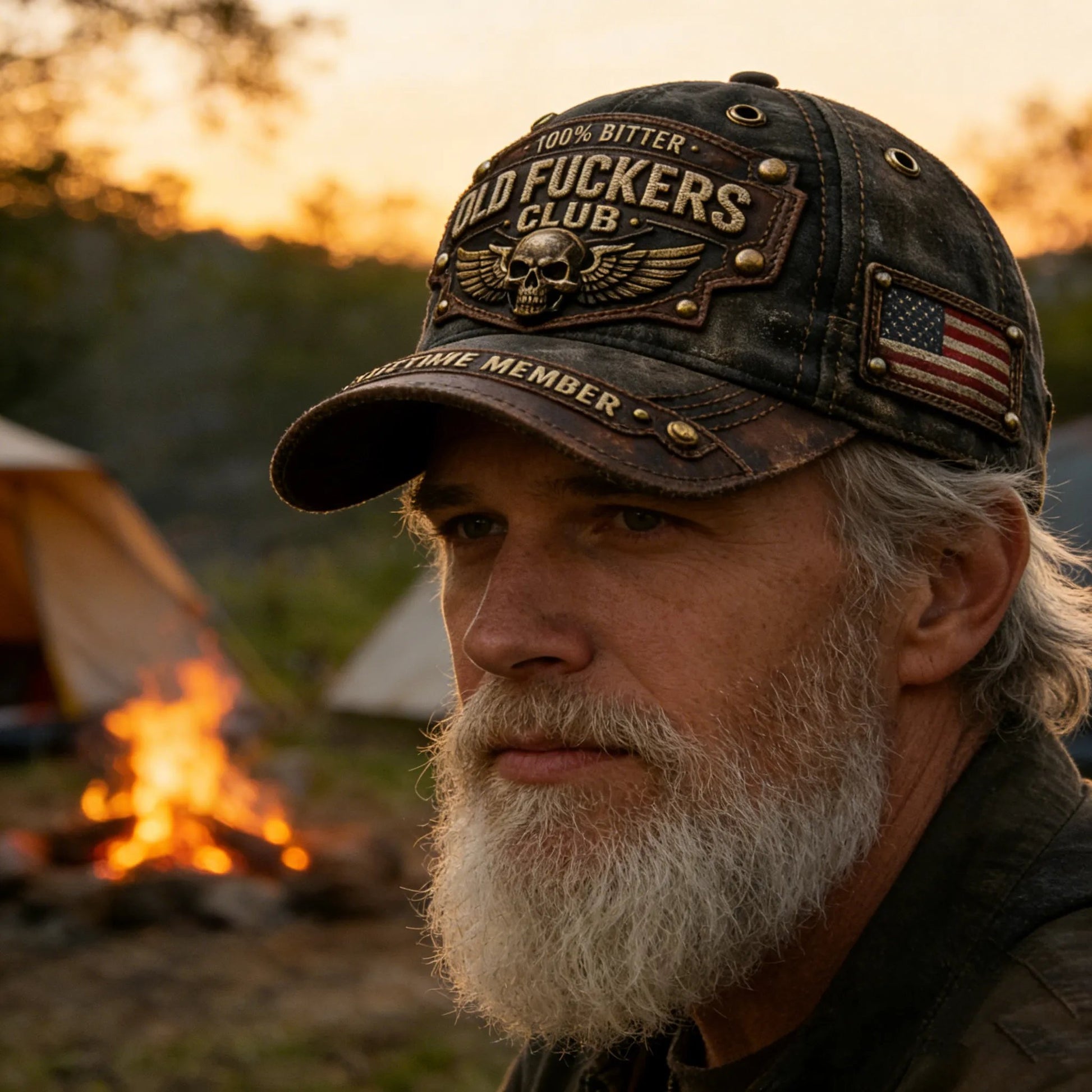 The high quality vintage cap that celebrates aging with bold humor and rugged style.