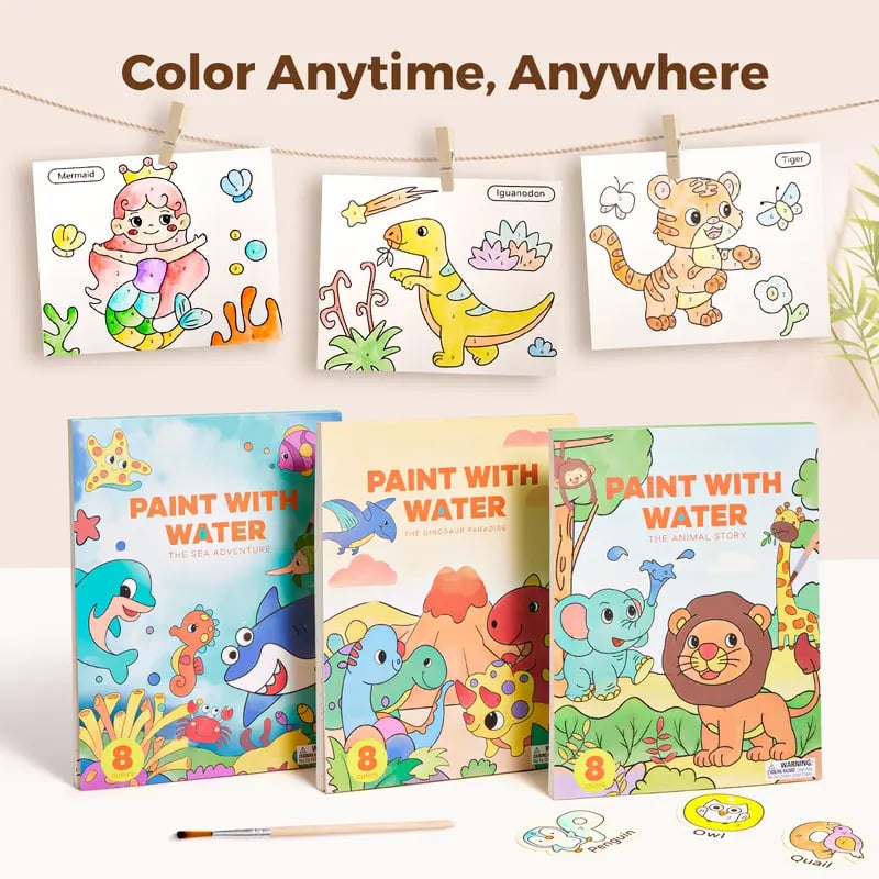 🖌️ 3-in-1 Mess-Free Design: Each page comes with its own integrated paint palette and brush. Just add water, paint, and watch the colors come to life—no spills, no mess, no stress.