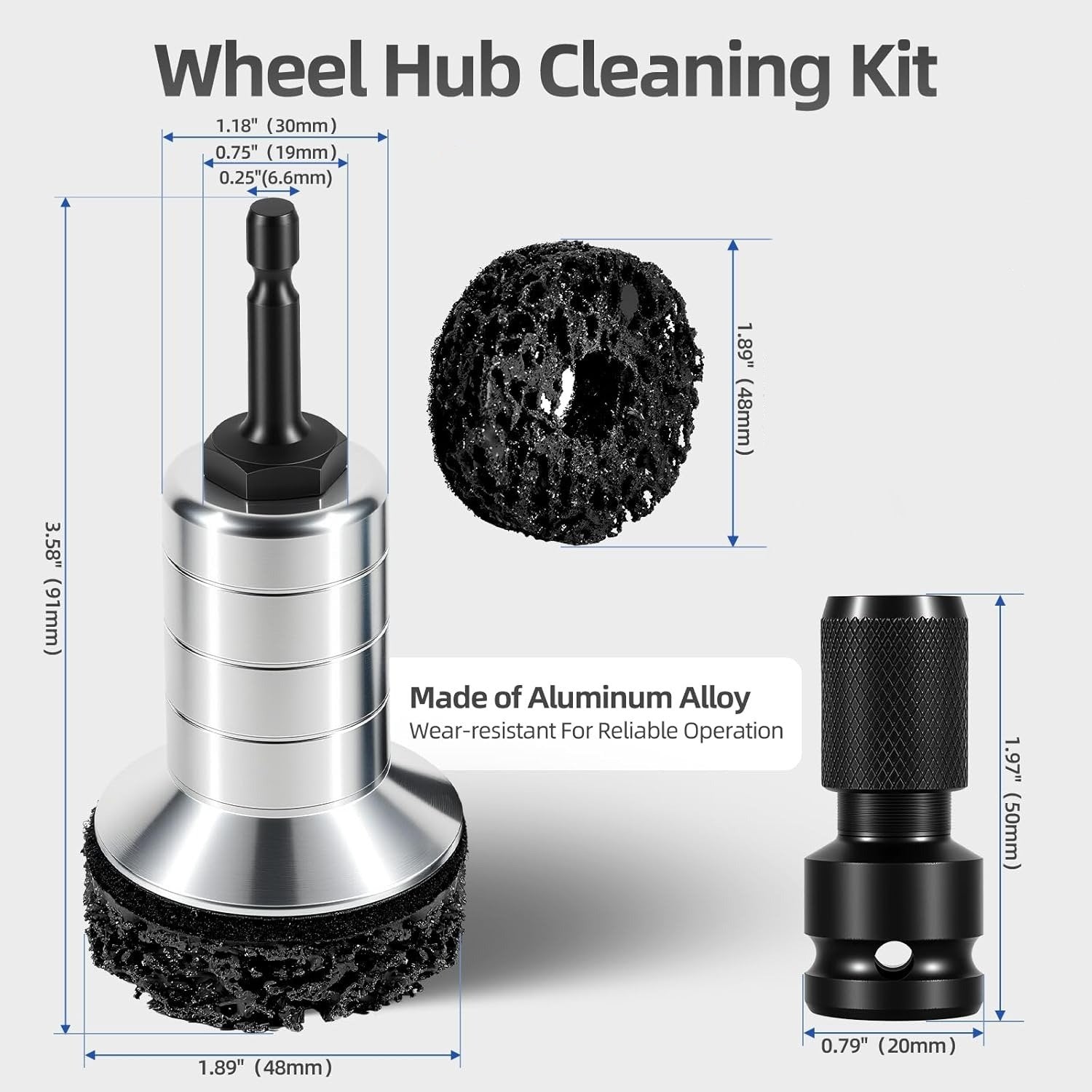 Perfect for cleaning wheel hubs, brake rotors, lug studs, and inner wheel surfaces. Also ideal for rust removal, deburring, and surface prep on automotive, chassis, and mechanical parts—one tool for multiple garage tasks.