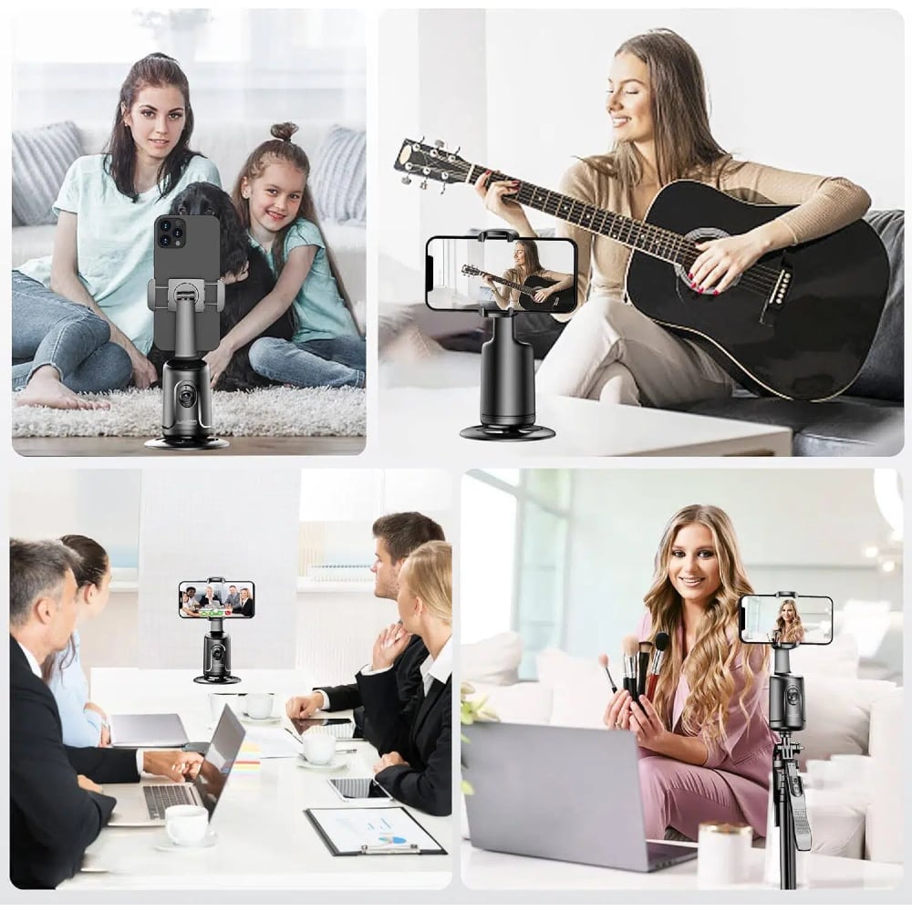 Turn your phone into a personal cameraman. This smart auto face tracking phone holder automatically follows your movements, keeping you perfectly centered for videos, live streaming, video calls, workouts, cooking, and content creation — no app required.