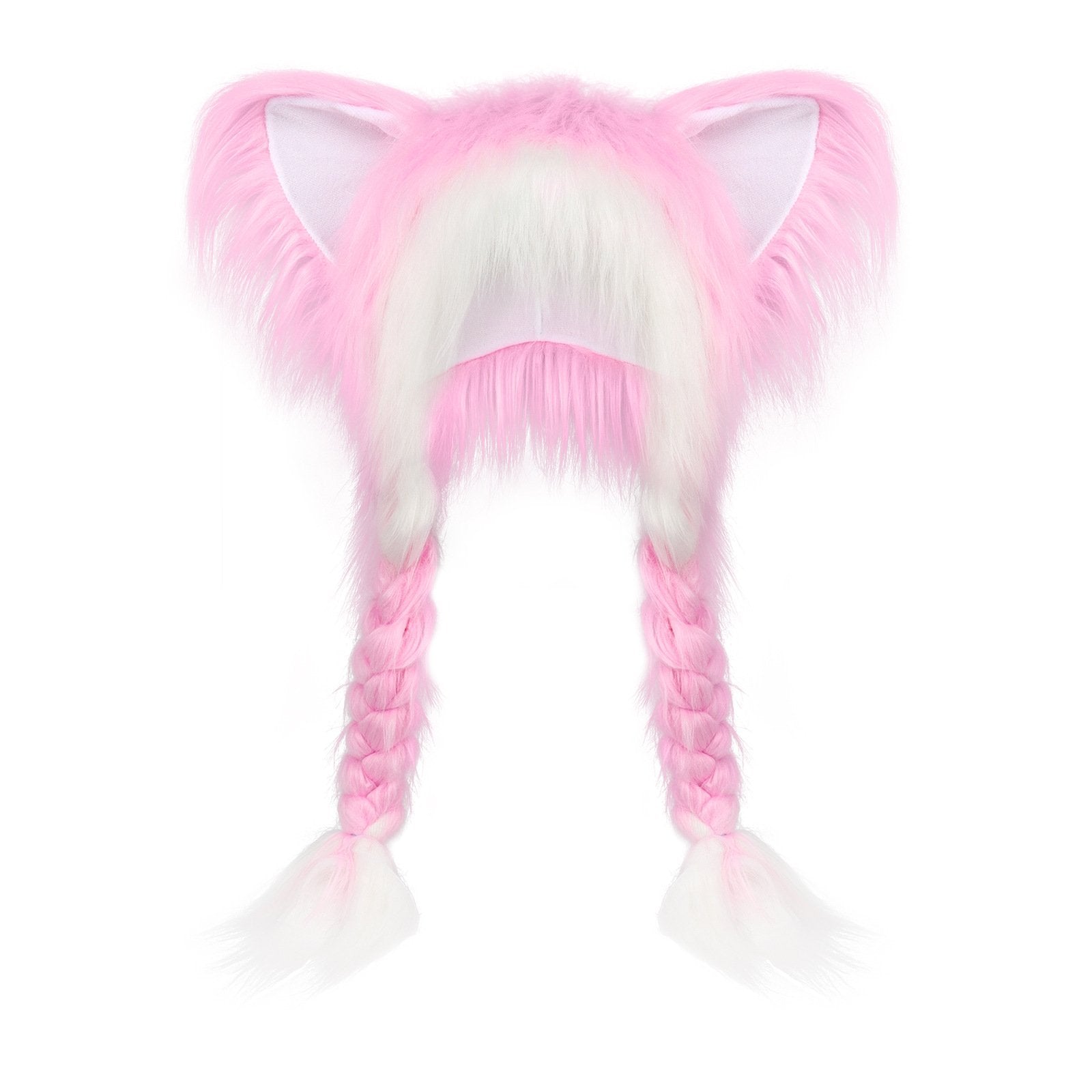 Two long plush braids hang from the headband, also designed in matching two-tone colors. They feel soft against the skin, add playful movement, and offer extra warmth—perfect for cold days or eye-catching cosplay looks.