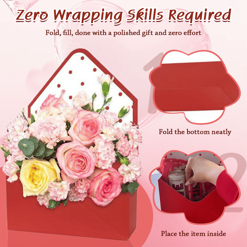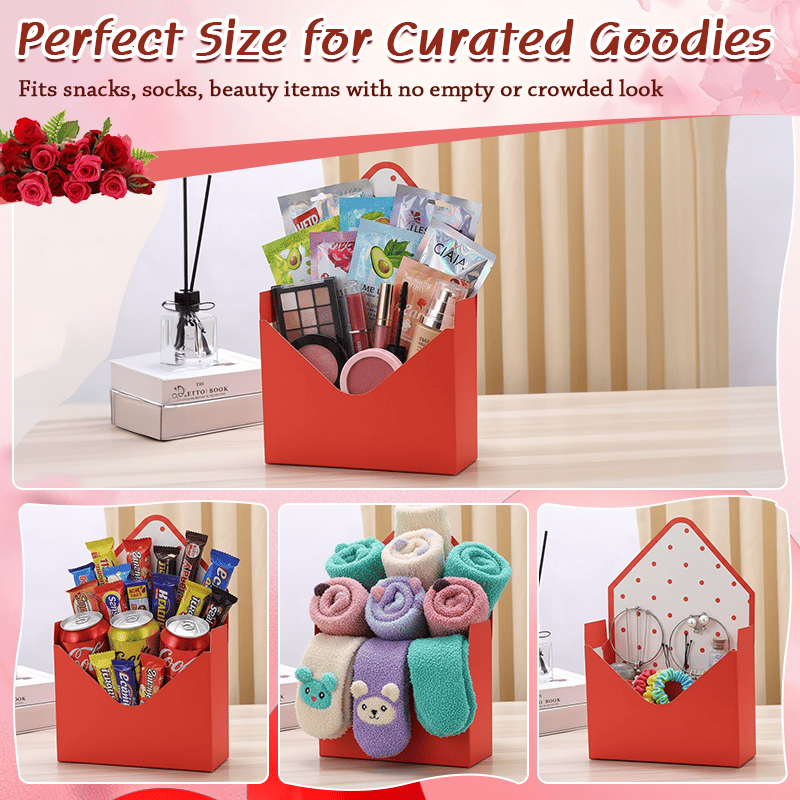 Forget hiding your gifts in a bag. This box features an open-top, envelope design that displays your items beautifully. Arrange treats, flowers, and keepsakes so the recipient gets a "WOW" moment the second they see it.